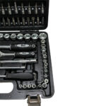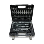 Комплектът включва пълна гама от вложки, битове и инструменти, покриващи всяка нужда – от фини операции до тежки ремонти. Всички елементи са изработени от висококачествена инструментална стомана за максимална здравина и надеждност.