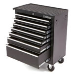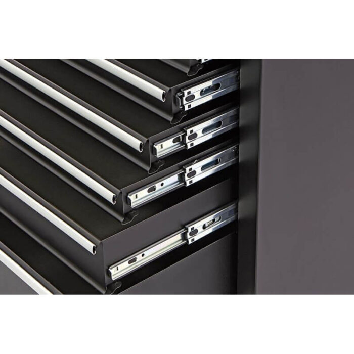 Изработена от здрав метал и устойчива пластмаса, тя предлага 7 чекмеджета (6 малки + 1 голямо) с двойни лагери и анти-приплъзващи подложки за безопасно съхранение на инструментите.