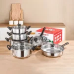 Добавете стил и функционалност във вашата кухня с този многофункционален комплект съдове за готвене от 12 части, изработен от висококачествена неръждаема стомана с незалепващо покритие. Подходящ за газови, електрически и индукционни котлони, този комплект е идеален за ежедневна употреба и приготвяне на разнообразни ястия.