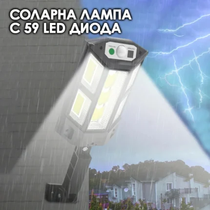 Соларна лампа SOLARFORCE с 59 LED диода, бяла светлина 6000К, вградена Li-ion батерия, водоустойчивост IP65 12.90 € (25.23 лв.) Original price was: 12.90 € (25.23 лв.).7.90 € (15.45 лв.)Current price is: 7.90 € (15.45 лв.).