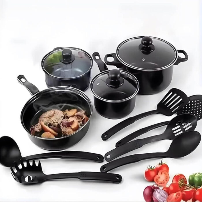 Комплект съдове за готвене от 13 части с незалепващо покритие – Подходящ за всички видове котлони