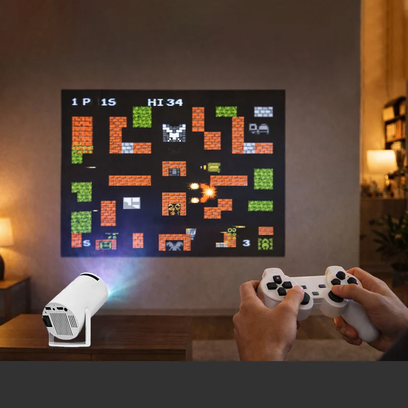 Проекторът е оборудван с мощен процесор и над 1000 вградени класически ретро игри, които се стартират без нужда от допълнителни устройства. В комплекта са включени два безжични джойстика, което го прави идеален за игра по двойки — както състезателни, така и кооперативни режими.