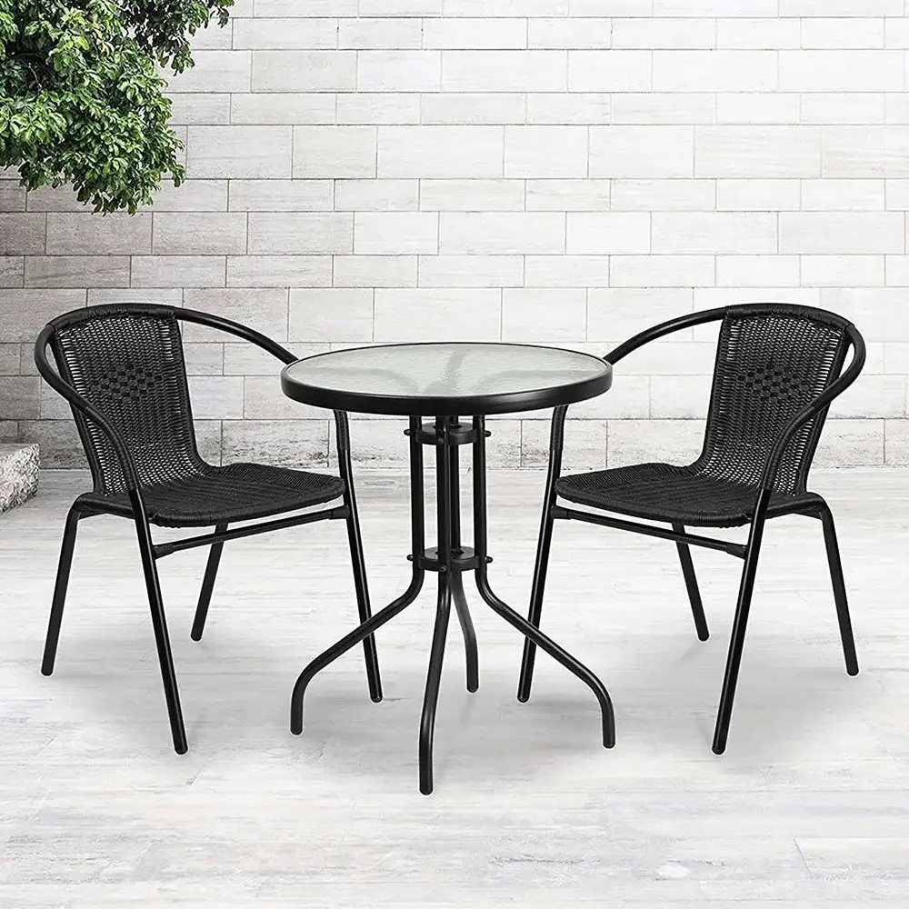 Тази кръгла градинска маса съчетава красота, практичност и устойчивост, за да ви осигури удобство и стил в ежедневието.