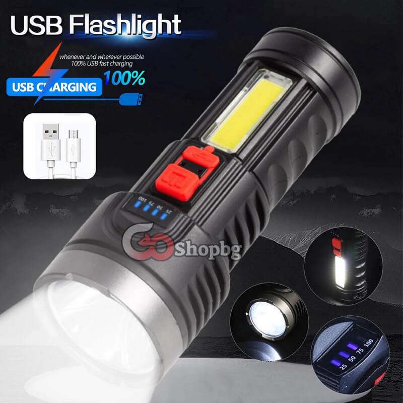 - 3 режима на основната светлината (100%, 50%, SOS)