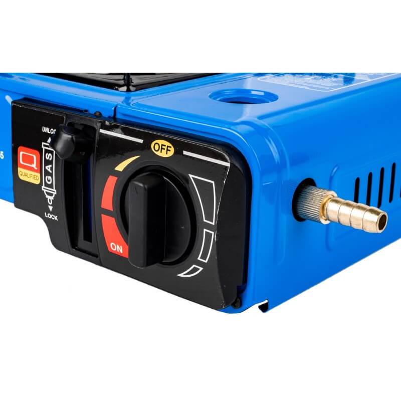• Работи с бутан-пропан или изобутан – съвместим с минипатрони и стандартни газови бутилки (чрез редуктор и маркуч);