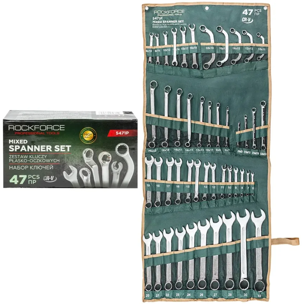 Професионален комплект комбинирани гаечни ключове ROCKFORCE – 47 части
