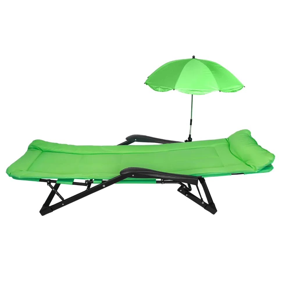 Начало Дом и градина Градински мебели Сгъваем стол-шезлонг с чадър в зелено